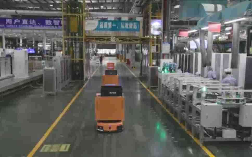 为车载冰箱物流配送打造的智能解决方案,,,,包含产中物流通过潜伏举升AMR搬运至线边,,,,产后成品物流智能仓储,,,,流程包含产中物流智能齐套入库,,线边安灯叫料AMR智能配送至线边,,,成品入库、、出库,,,,通过无人堆高车机器人,,,,智能仓储管理替代人工作业管理,,,实现更高存储、、更高效率、、、更具柔性化的解决方案。。。。